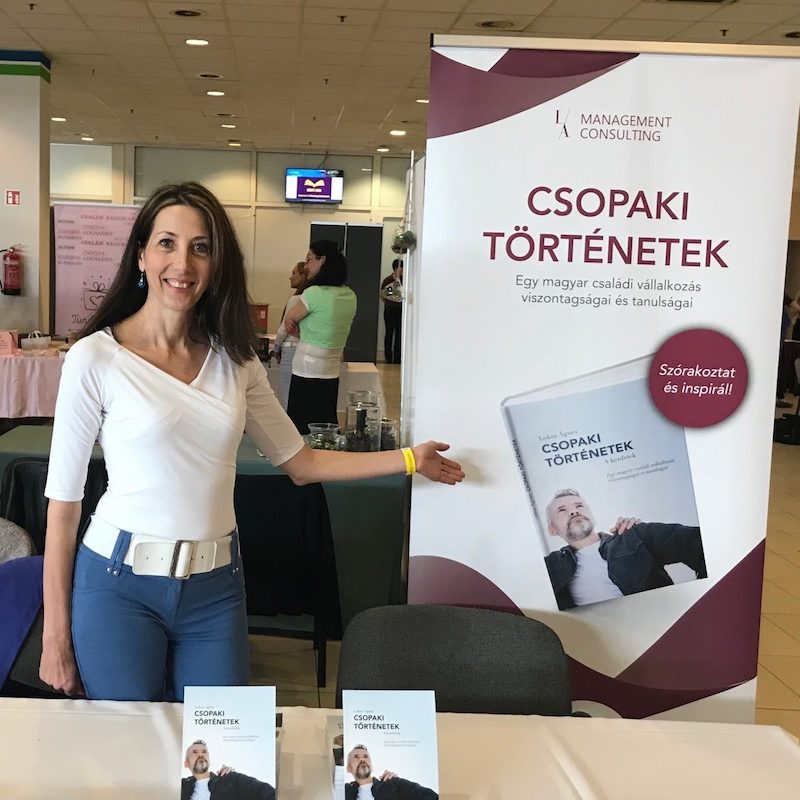 Visszatérve a korábbi dolgos szombatra, a KÖNVY 2019 konferencia napján már reggel 8-tól érkeztek az érdeklődök, ezért a kiállítóknak – mint nekem is – már korábban kellett érkezniük. Én a nemrég megjelent Csopaki történetek című könyvemet pakoltam ki az asztalra. A címben szereplő “Csopaki” nem a helységet jelöli, hanem személyneveket takar. Csopaki Dénes és fia Csopaki Roland mai magyar vállalkozók, akik mindenféle bonyodalmakba keverednek. A rövid történetek tanulságos mesék átszőve izgalommal, szerelemmel, ármánnyal. Remek olvasmány reggel a kávé mellé, délutáni kikapcsolódáshoz, utazáshoz.